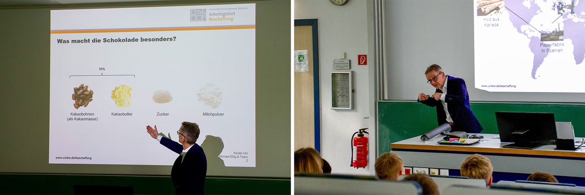 In der Kinderuni-Vorlesung am 10. April wurde den teilnehmenden Kindern erklärt, was Logistik ist und wie sie funktioniert – und an praktischen Beispielen gezeigt, warum wir sie jeden Tag brauchen. Wir sind es gewohnt, dass im Supermarkt jeden Tag alle Regale gefüllt sind und wir unsere Lieblingsschokolade immer kaufen können. Wir bestellen selbstverständlich im Internet und die Lieferungen kommen nächsten – teilweise sogar am selben – Tag schon bei uns zu Hause an. Aber wie funktioniert das? Tatsächlich stecken dahinter ausgefeilte logistische Prozesse mit vielen Beteiligten, wie die Kinder in der Vorlesung lernen durften.