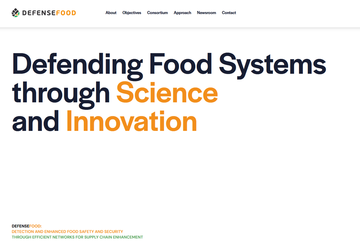 Das EU-Horizon-Projekt DEFENSEFOOD (Defending the food systems through science and innovation) zielt darauf ab, die Widerstandsfähigkeit der europäischen Lebensmittelversorgungskette gegenüber chemischen, biologischen und radiologischen (CBR) Bedrohungen zu verbessern und eine robuste Vorsorge, schnelle Reaktion und effektive Wiederherstellung zu gewährleisten. Es läuft bis Ende September 2029.