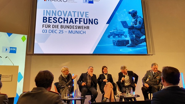 On December 3, 2025, the Munich Working Group of Reserve Officers (MAKRO e.V.) organized an exciting panel discussion at the Chamber of Industry and Commerce in Munich and Upper Bavaria on the topic of “Innovative procurement for the German Armed Forces - navigating the balance between law, technology, and operational reality.” Representatives of the German Armed Forces highlighted the challenges and adjustments that need to be addressed and how rapid contact between the German Armed Forces, industry, and research units can increase the speed of development.