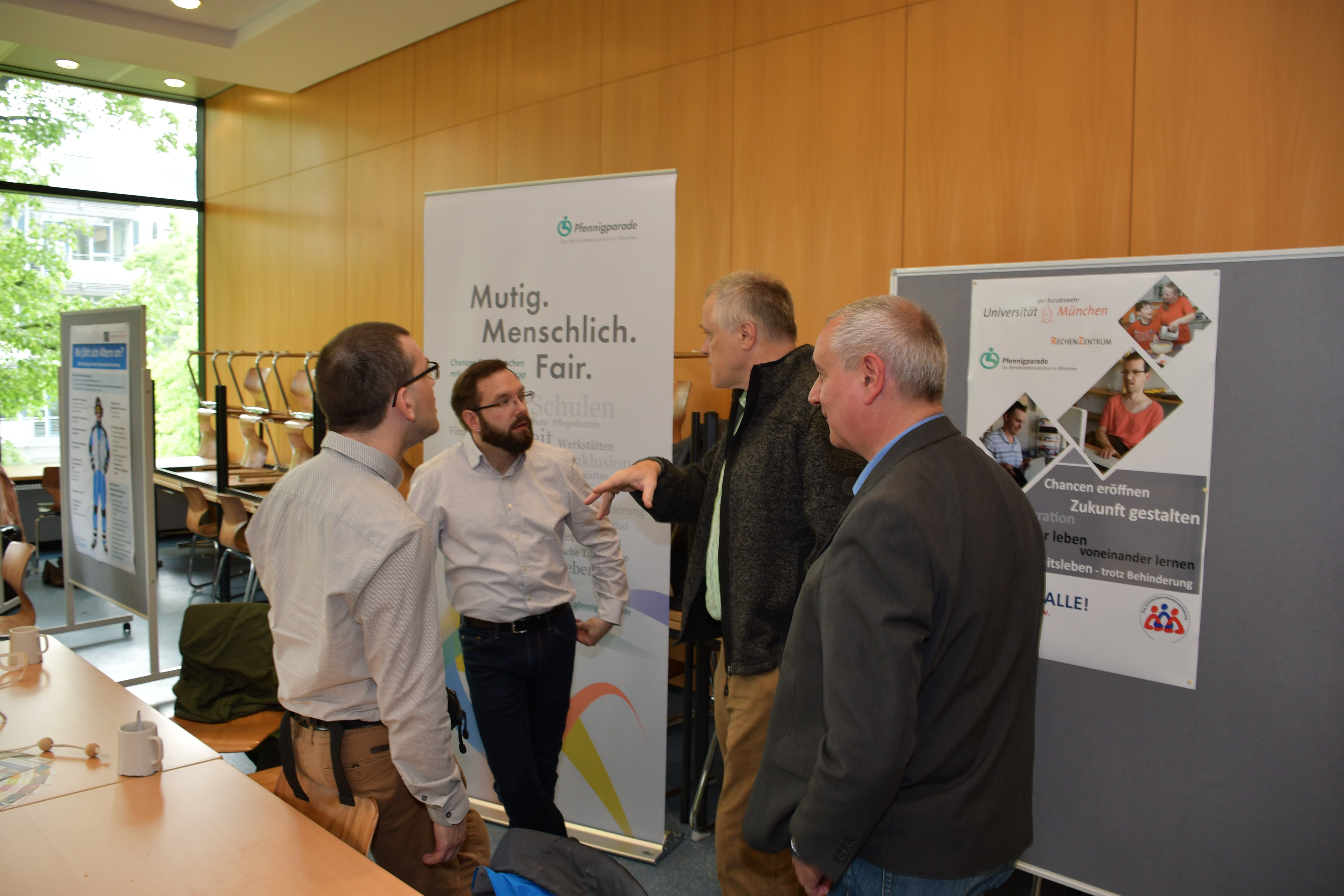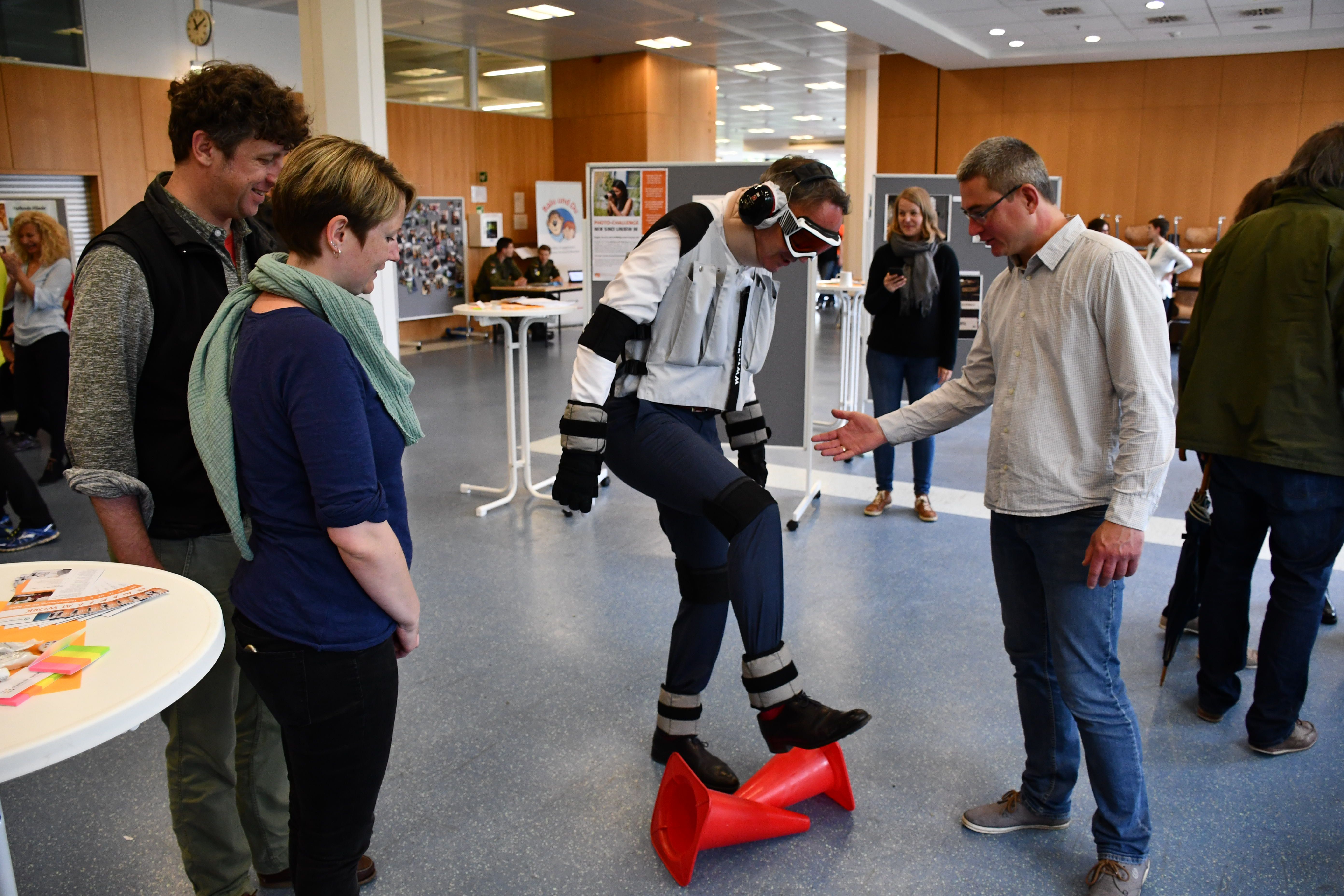 In der Mensa konnten sich Universitätsangehörigen nach einer ökumenischen Andacht und einem internationalen Frühstück im Zeitraum von 10.00 Uhr bis 14.00 Uhr an Infoständen ein Bild über die Arbeit verschiedener Einrichtungen, die inner- und außerhalb der Universität Diversität fördern, machen: Mit speziellen Brillen empfanden die Besucherinnen und Besucher nach, mit welchen Herausforderungen Menschen mit Behinderung täglich konfrontiert sind. Im Simulationsanzug entdeckten sie, wie sich Alterungsprozesse auf den Körper auswirken. Bei einer Sport-Challenge konnten sie sich für den Verein "Helfende Hände" engagieren, mit dem die Universität eine Patenschaft hat. In einem Quiz testeten sie ihr Diversity-Wissen. Die Infostände boten die Möglichkeit, sich über Auslandsaufenthalte, Sprachkurse, das Programm "Balu und du", die Arbeit der zivilen Gleichstellungsstelle, der Pfennigparade, dem Studentischen Konvent und dem Arbeitskreis Homosexueller Angehöriger der Bundeswehr zu informieren.