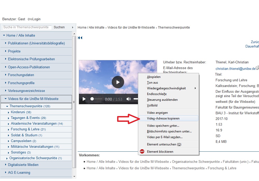 Einbinden des Videos in die UniBwM-Webseite