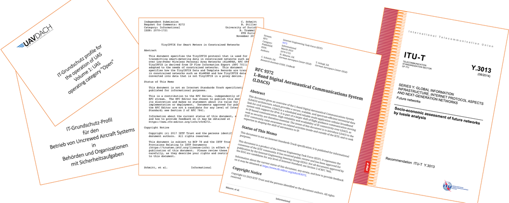 - J.Fehler, K.L.John, M.Müller-ter Jung, H.Rossol, M.Rossol, C.Schmitt, B.Wrenger (Eds.): IT-Grundschutz profile for the operation of UAS Volume 1: UAS operating category "Open". UAV-Dach Competence-Group IT-Security and Savety, Bonn, Germany, January 2025